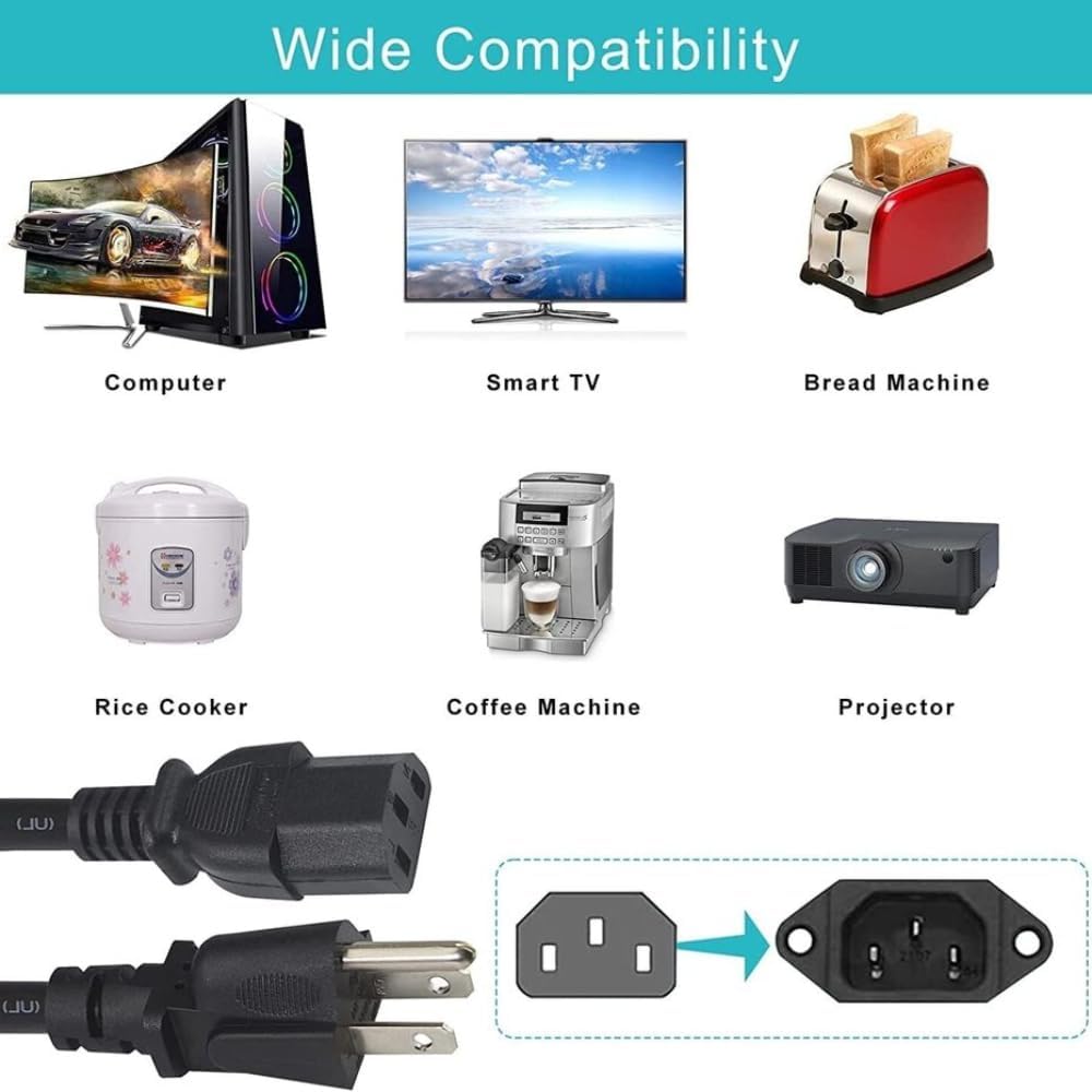 - Universal Compatibility – Fits laptops/monitors/printers with standard C5/C6 connectors