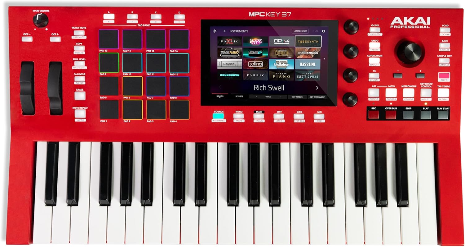 - All The Tools You Need – 37 full-size keys, 16 Velocity-Sensitive RGB MPC Pads, 7″ Multi-Touch Display, Pitch and Modulation wheels, Touch-Capacitive 4 Q-Link Knobs, Encoder Knob, Transport Controls