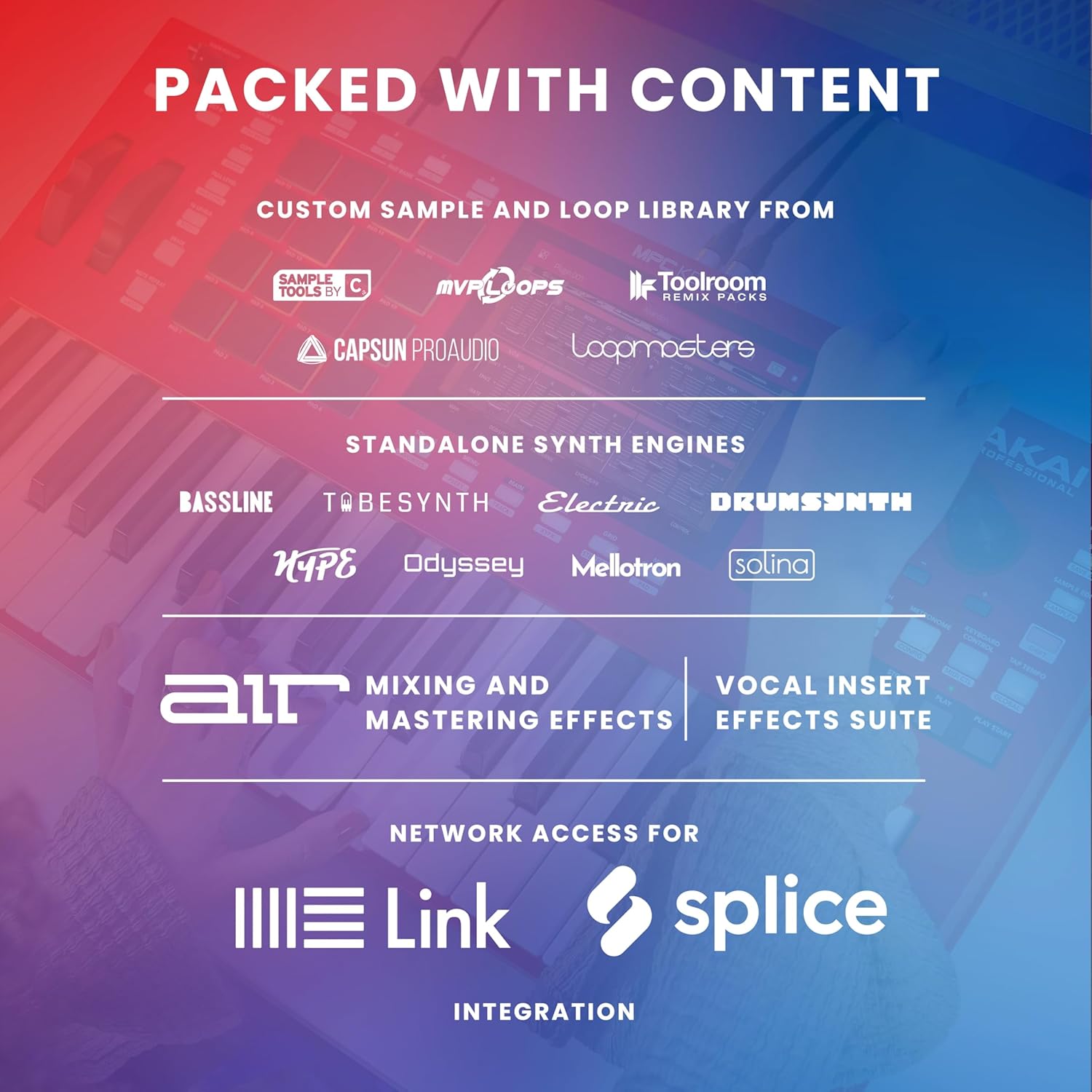 - Standalone Supercharged -Featuring Wi-Fi and Bluetooth MIDI, Ableton Link 3, MPC2 Software supporting 128 audio tracks, nearly unlimited number of plugin instruments and 3rd party AU/VST plug-ins