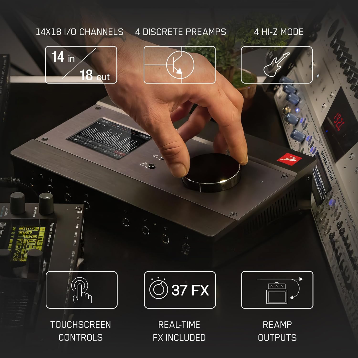 - VERSATILE I/O OPTIONS FOR MULTI-INSTRUMENT SETUPS: Audio interface mixer Connect a variety of gear with 4 Hi-Z/line inputs, 8 DC-coupled line outs, S/PDIF & ADAT connections, two headphone outs, and a stereo monitor out. Perfect for multi-instrument recording, this audio interface delivers unmatched flexibility for instruments, headphones, and monitors in any setup.