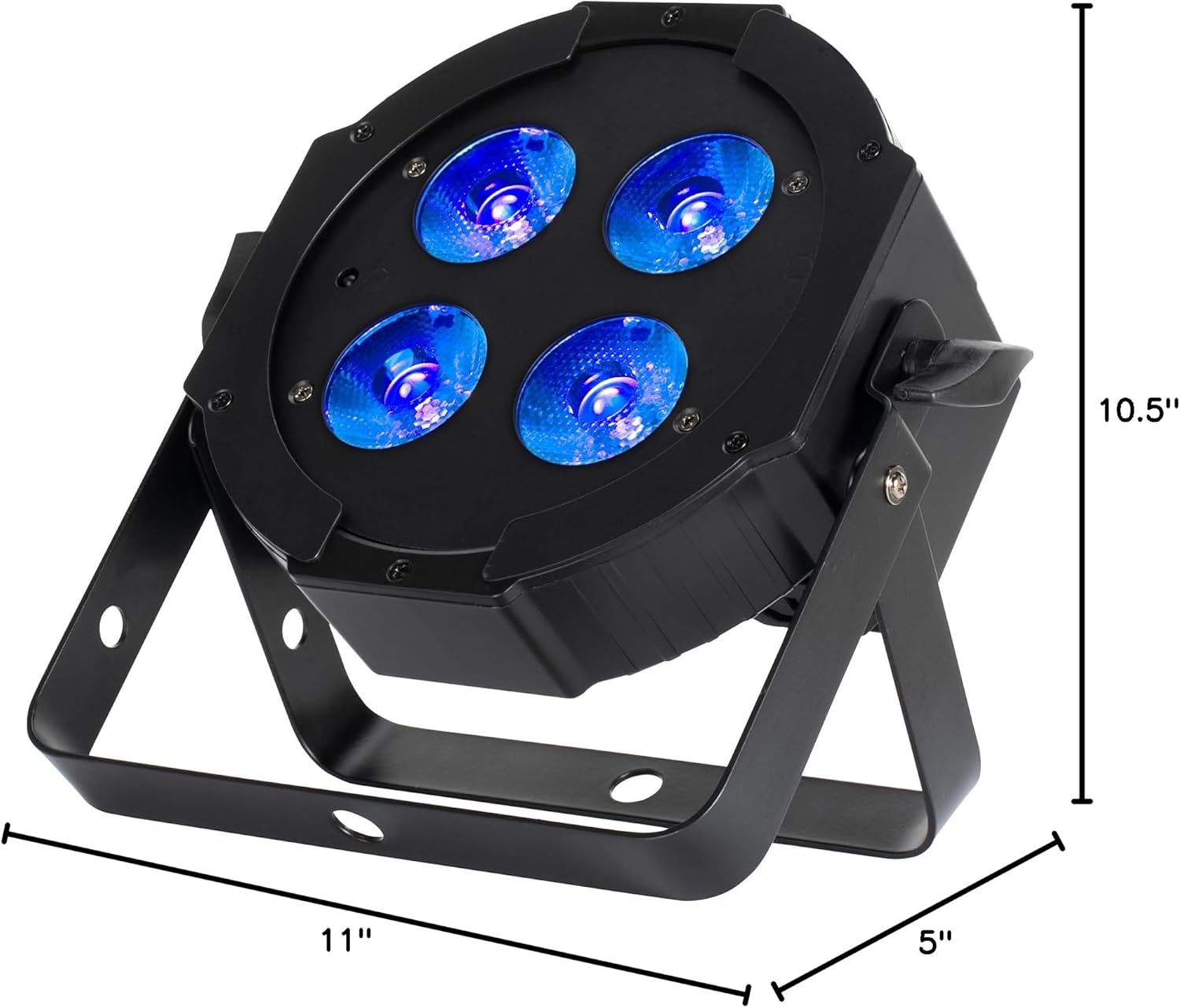 - Features: 4 x 20-Watt, 6-IN-1 Hex (RGBLA+UV) LEDs (50,000 hrs.), CRI: 90, Lumens: 1100, Beam Angle: 17° (native); 20° (with frost filter), Color Strobe Effect, 63 built-in Color Macros, 15 White Color Temperature Presets, 13 built-in programs