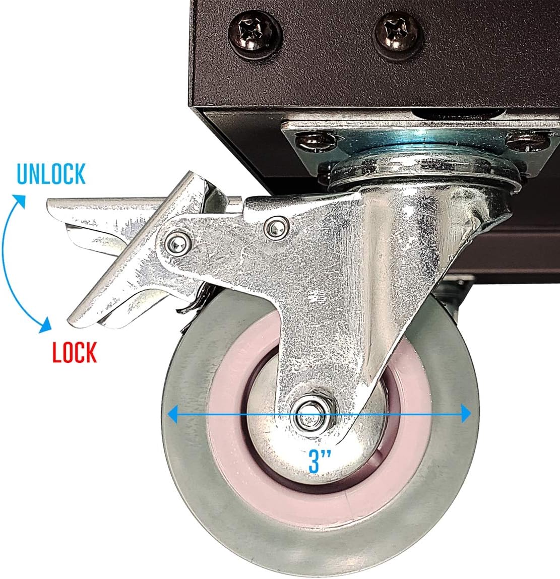 - Mobile & Secure – Preinstalled with 3” industrial-grade caster wheels (lockable), making it easy to move and position your rack exactly where you need it.