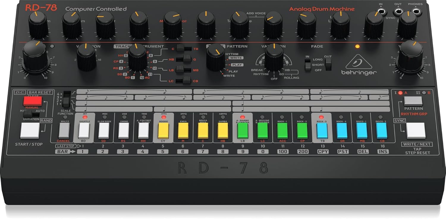 Behringer RD-78 Classic Analog Drum Machine with 15 Drum Sounds, 34 Rhythm Presets, 16-Step Sequencer for Music Production and Live Performance