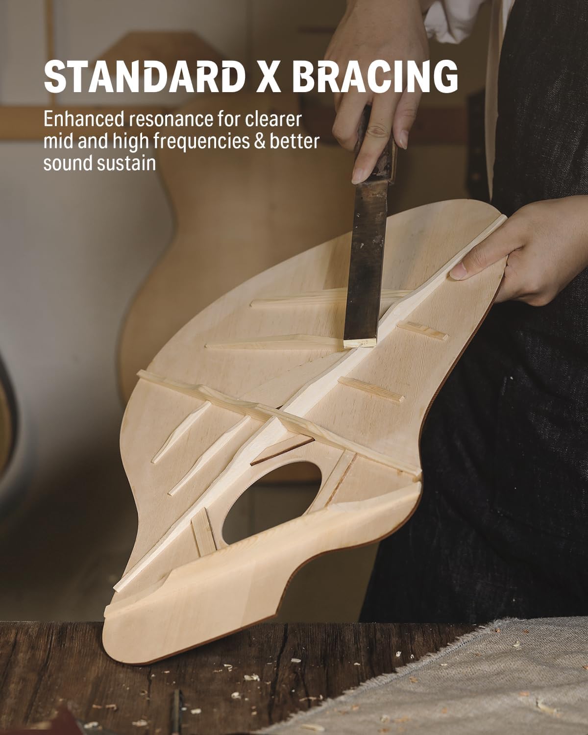 - 【Well Made Craftsmanship】: Boasts a spruce top complemented by a mahogany back and sides, reinforced with X bracing for durability and sound quality; The fretboard features 20 brass frets with clear position markers on the 3rd, 5th, 7th, 9th, 12th, 15th, and 17th frets, designed to withstand years of practice and performance