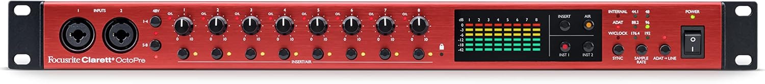 Clarett+ OctoPre is an 8-in / 8-out ADAT mic pre that delivers professional audio quality with the original Focusrite Studio Console sound.