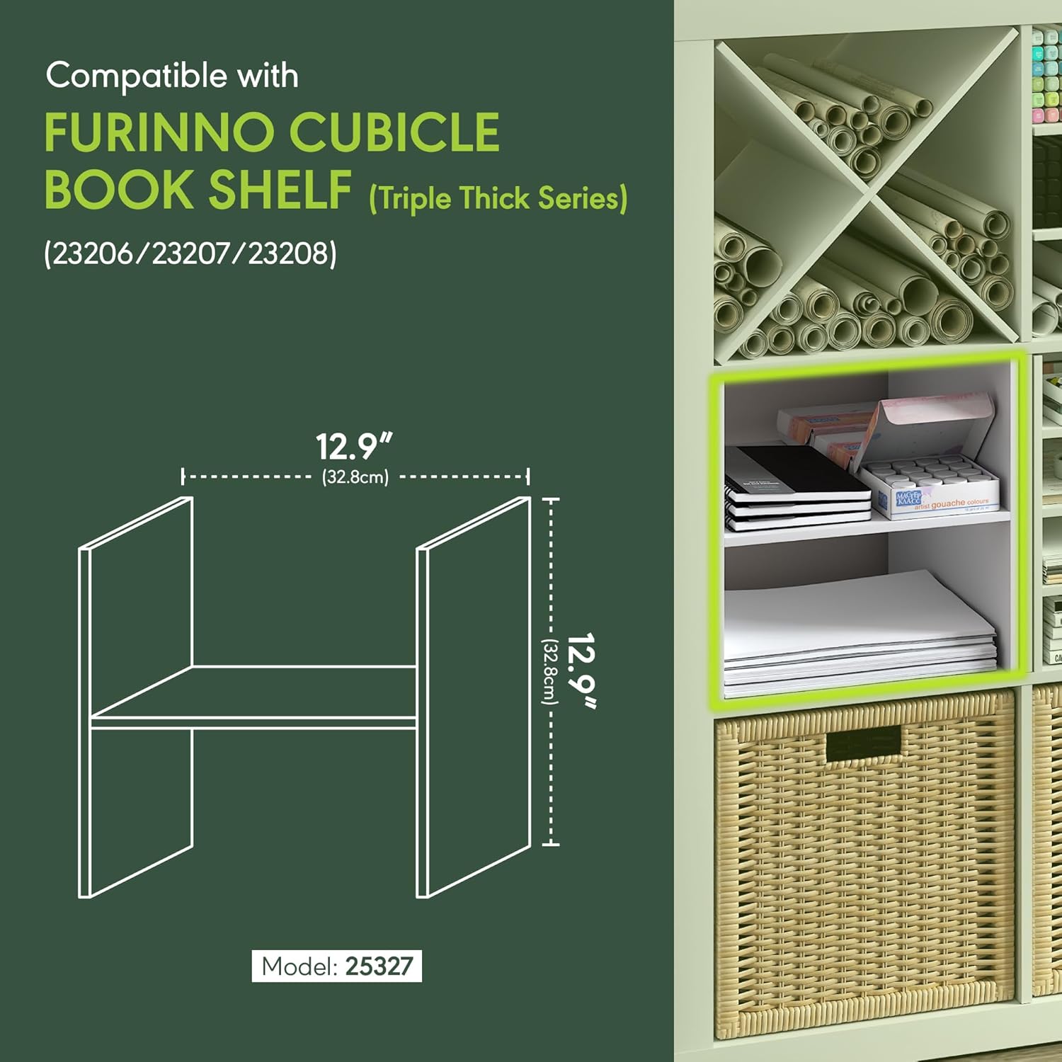 - FITS FURINNO CUBUCLE TRIPLE THICK & KALLAX SERIES: The shelf accessory measured 12.9″ H x 12.9″ W that perfectly fit into Furinno Triple Thick Cubes and IKEA KALLAX series; perfect for compartmentalization/ organizing for cube storage organizer, cube shelf, cubby system in Living room, home office, study, or entryway, making the shelf accessory practical and space-saving