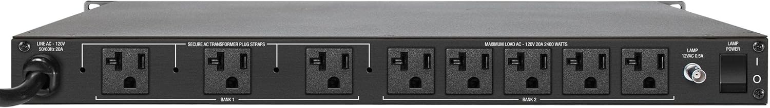 - 20 amp power conditioner with 10 foot, 12 gauge power cord. This model does not offer pull out lights.