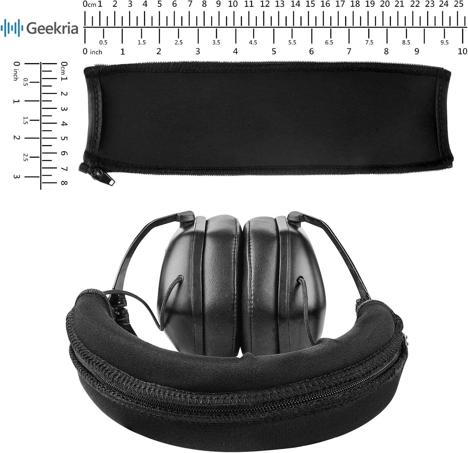 Geekria Flex Fabric Headband Cover Compatible with V-Moda Crossfade LP/ LP2/ M-100/ Wireless Headphones, Replacement Repair Part, Easy DIY Installation (Black)