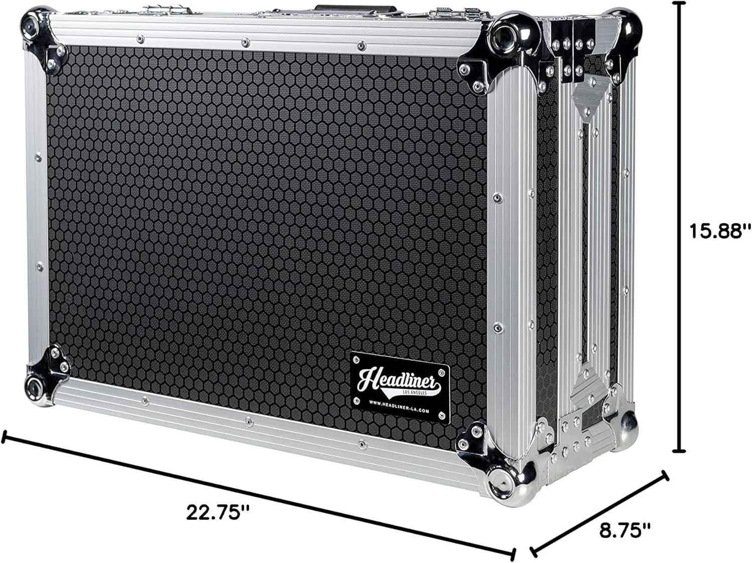 - Heavy-duty construction built to withstand the rigors of the road, including 3/8” (9mm) plywood with rugged hexagon laminate exterior and high-density foam lined interior, heavy-duty steel ball corners, aluminum profiles, recessed spring-loaded padded handles, recessed butterfly latches with padlock staples, high-density foam interior lining and foam pads under lid to protect faders and knobs