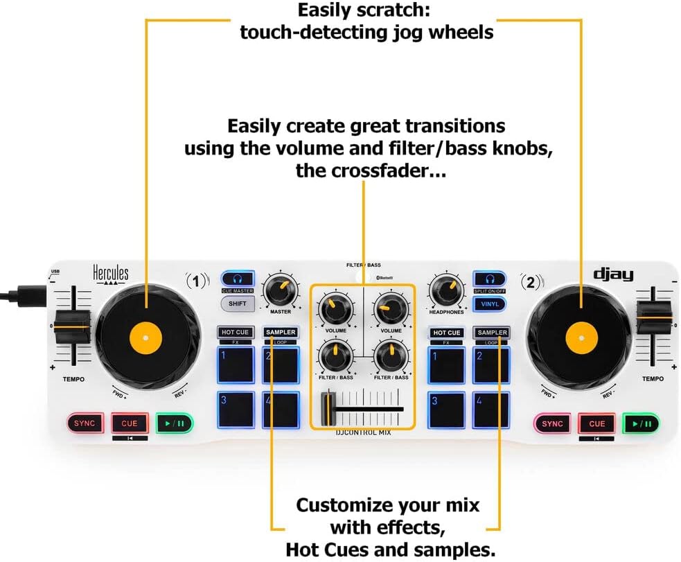 - Start mixing: DJControl Mix has the essential DJing features you need