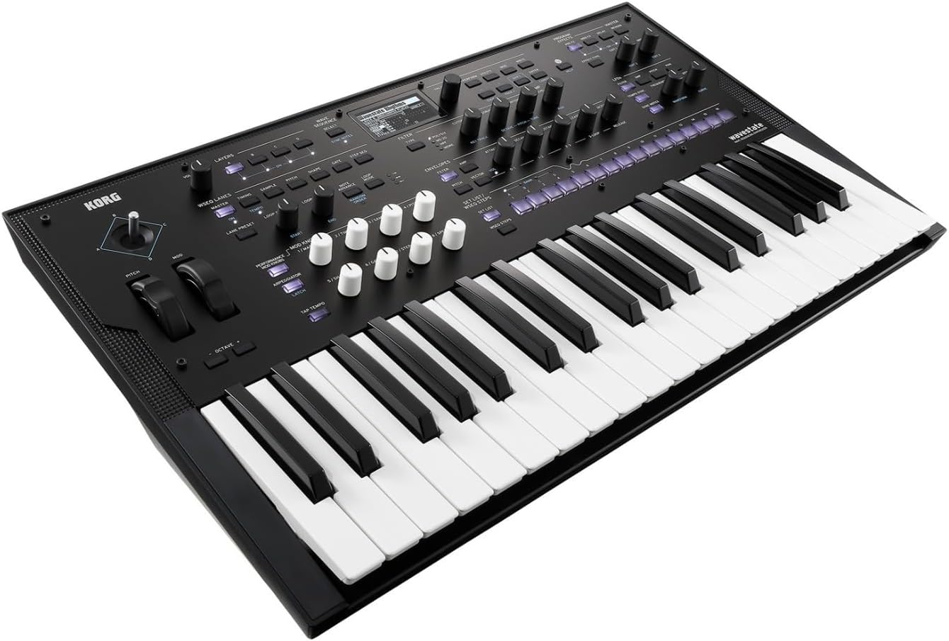 Wave Sequencing for the 21st Century Wave sequencing synthesis is back and better than ever, in the Korg wavestate 37-key synthesizer. Building on the legendary heritage of the original Wavestation from 1990, and with a focus on real-time performance and groundbreaking sample manipulation, everyone from fans of classic ’90s synths to forward-thinking sound designers have reason to be excited. By combining elements of subtractive synthesis, groove boxes and drum machines, and algorithmic composition, wavestate offers sonic capabilities you won’t find anywhere else. And with the ability to save your presets as a Set List for fast recall, and Smooth Sound Transitions that allow a sound to finish ringing out even after you’ve changed patches, the Korg wavestate synthesizer keyboard could be the new performance synth you’ve been waiting for.Wave Sequencing 2.0 With its ability to take raw samples and transform them into never-before-heard sounds, the original Korg Wavestation became a
