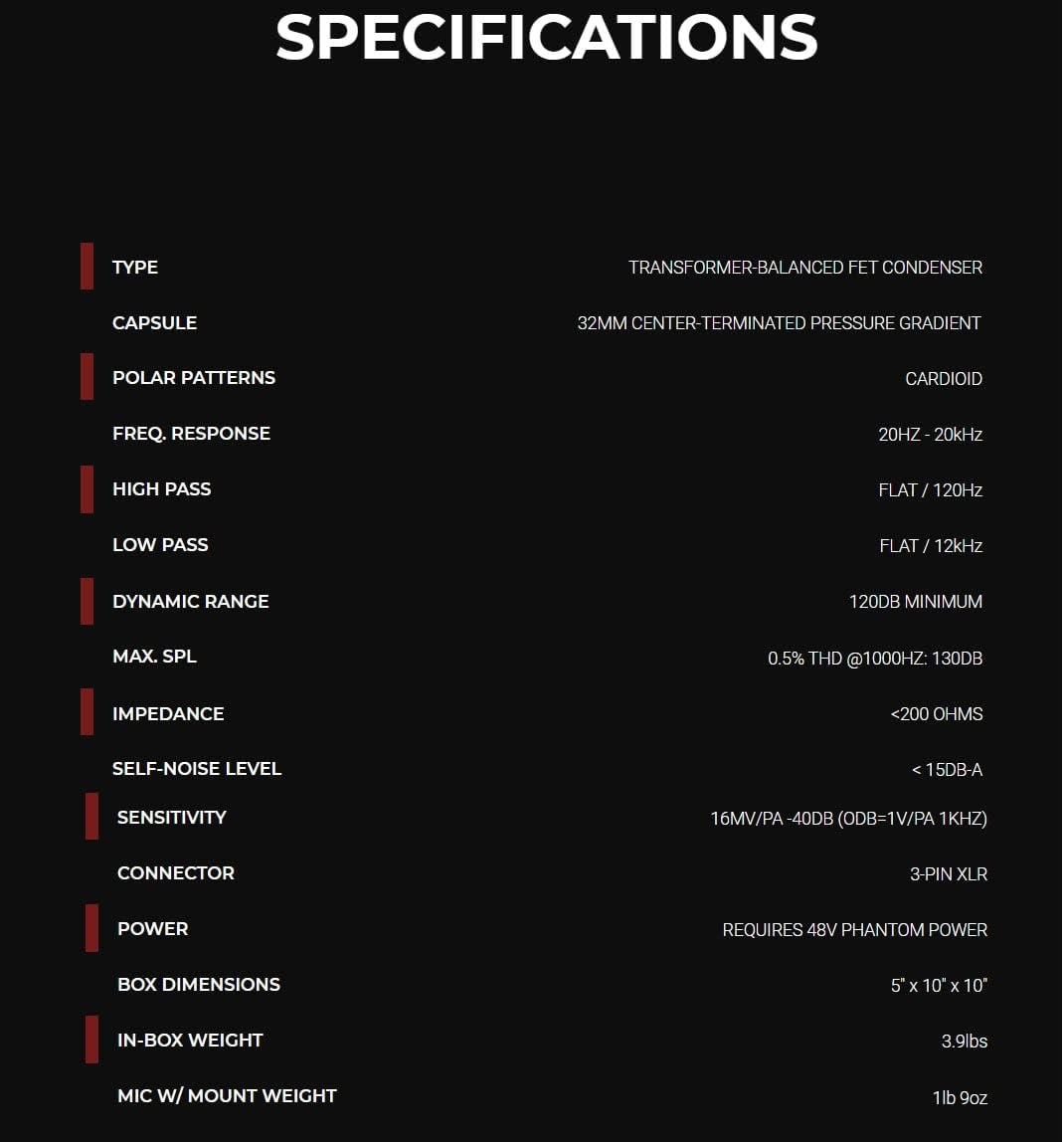 - Large-diaphragm FET Condenser Microphone with Cardioid Polar Pattern