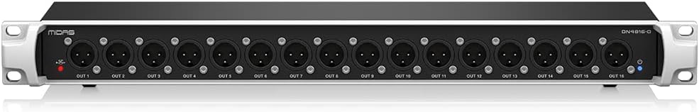 DN4816-O features 16 balanced line-level outputs that can carry up to 8 stereo mixes separated from the Console. All you need to do is mount the DN4816-O to your wireless rack and connect it to your console using a single XLR cable. This way you can save local outputs, reduce setup time and increase reliability considerably. Alternatively, these analogue outputs can also be used as spare outputs on stage receiving signals directly from the FOH consoles, e.g. for providing talkback or side fill outputs.