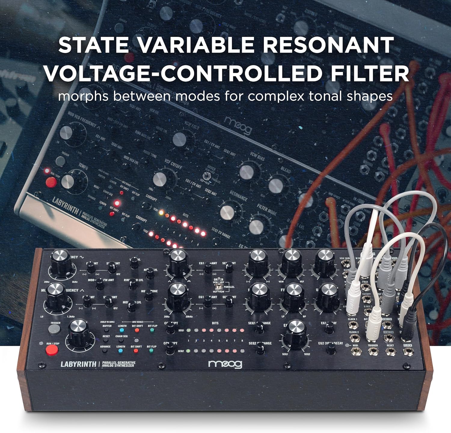 MOOG Labyrinth – Semi-Modular Parallel Generative Analog Synthesizer with Dual Sequencer, Dual Oscillators, VC Wavefolder, VC Filter, Patch Bay