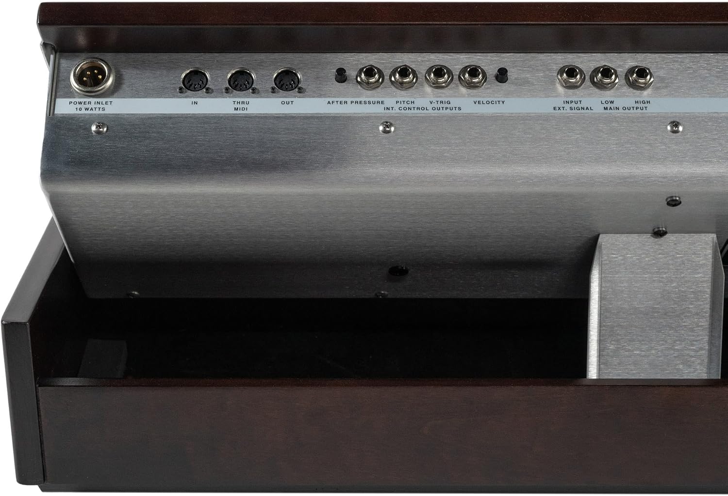 These modifications include a dedicated analog LFO with triangle and square waveshapes, a premium Fatar keybed with velocity and after pressure available via top panel CV jacks with onboard trimpots, MIDI integration.