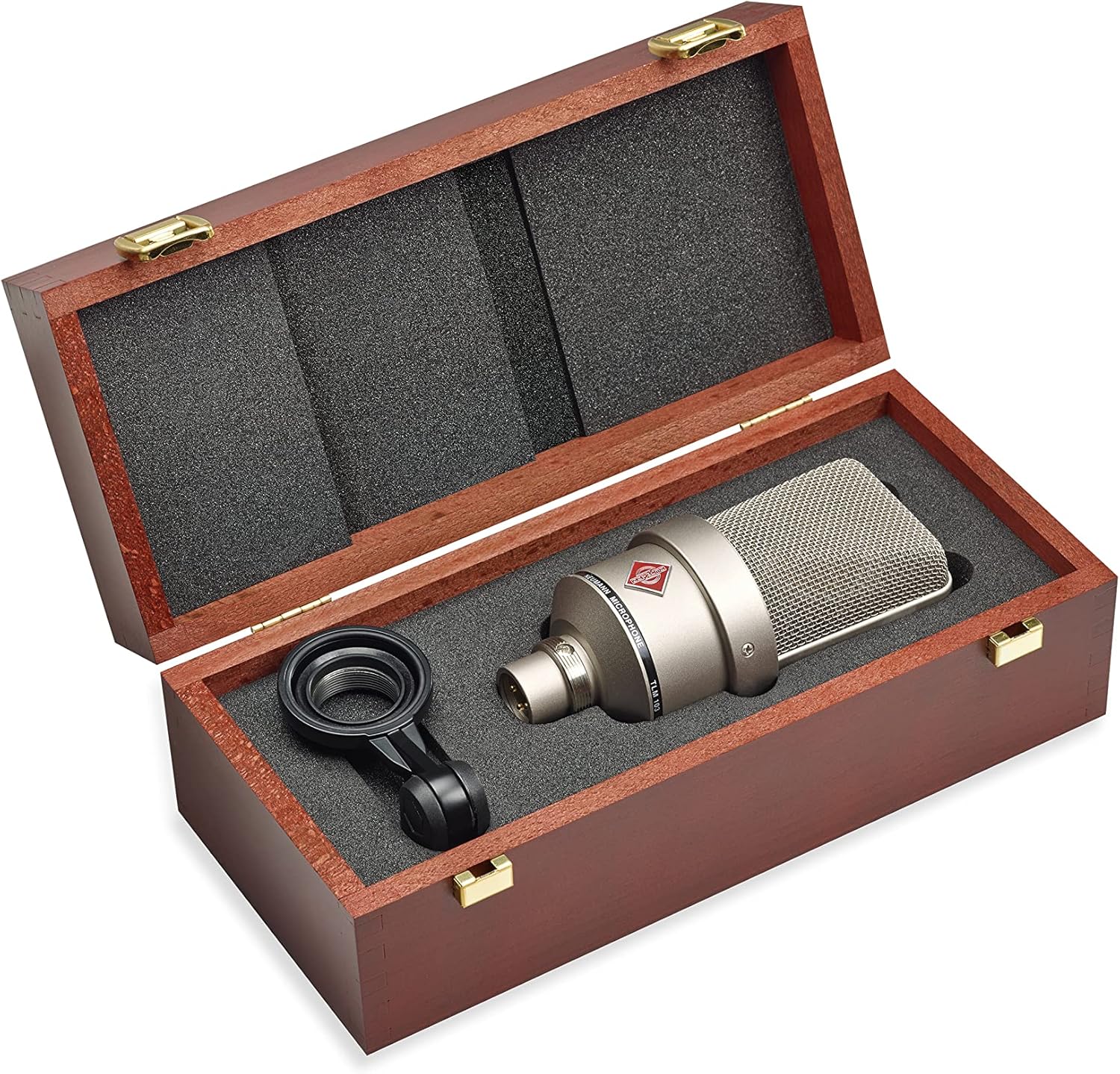 Utilizing Neumann s famous K87 large-diaphragm capsule found in their world-renowned U87ai and U67 microphones,, the Neumann TLM-103 is a large-diaphragm condenser mic suited for a wide variety of sources. It s set at a tight, focused, cardioid pattern that aids in the rejection of unwanted signal from the rear of the mic, as well as providing excellent isolation.This is the highly coveted, much sought after Neumann sound, priced within reach to those on a limited budget, yet there have been no corners cut nor has their been a design compromise where quality is concerned.The acronym TLM stands for transformerless microphone. It yields extremely low self-noise and can stand pressure levels up to 138 db, which means you can place the Neumann TLM-103 in front of pretty much any sound source and expect excellent results.The TLM-103 shines as a vocal mic but also excels as a spot mic for woodwinds, strings, percussion, guitar cabinet micing, drum overheads, room micing, and field duties. Its low noise and wide frequency response make this microphone ideally suited for broadcast duties, be it voiceover work or foley (the reproduction of everyday sounds for use in filmmaking).It has a distinctive look, possesses the famous Neumann badge on the front of the mic, and most importantly, it s a Neumann – enough said.Features: Acoustical Operating Principal: Pressure Gradient Transducer Directional Pattern: Cardioid Frequency Range: 20 to 20,000 Hz Sensitivity: 21 mV/Pa Rated Impedance: 50 ohms Rated Load Impedance: 1000 ohms Equivalent SPL CCIR 468-3: 17. 5 dB Equivalent SPL DIN/IEC 651: 7 dB-A Signal to Noise Ratio CCIR 468-3: 76. 5 dB Signal to Noise Ratio DIN/IEC 651: 87 dB Max. SPL for less than 0. 5% THD: 138 dB Max. output voltage: 13 dBu Supply Voltage: 48V +/- 4V Power consumption: 3 mA Weight: aprox. 15.9 oz Dimensions: 2.4″ diameter, 5.2″ length Includes Wooden Case and Swivel Mount #html-body [data-pb-style=”632018FD1F790″]{justify-content: flex-start; disp