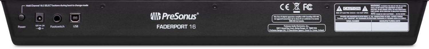 Product Description A superior solution for anyone who mixes in the box, only the FADERPORT 16 provides 16 100 mm touch-sensitive, motorized faders in a compact chassis that easily sits on any desk. Like Presonus popular fader port 8, the FADERPORT 16 features digital scribble strip displays; mute and solo for every channel; complete automation and transport control; plus level, pan, send, and plug-in control modes for every fader. The unique session Navigator makes mixing and controlling your favorite DAW Application quick and easy by putting eight critical functions under your fingers, including navigation, zoom, and Master fader control. The FADERPORT 16 is compatible with virtually any DAW host for Mac or Windows, with support for HUI and Mackie control, including customized Mackie control modes for Logic, Cubase, and Sonar. Its native studio one support provides even more functionality with Presonus easy-to-use DAW, including control link support as well as parameter follow, allowing you quick access to any control under your mouse. Its ergonomic design makes it a comfortable companion to your keyboard and mouse. From the Manufacturer Sixteen 100 mm touch-sensitive, motorized faders make mixing large sessions fast by providing control over many tracks at once. The unique Session Navigator provides eight different functions to speed up navigation, zooming, and moreall accessible with the push of a button. Mackie Control Universal support with customized modes for Logic, Cubase, and Sonar, plus HUI mode designed for Pro Tools, and native Studio One support make the FaderPort 16 ideal for use with any modern DAW.