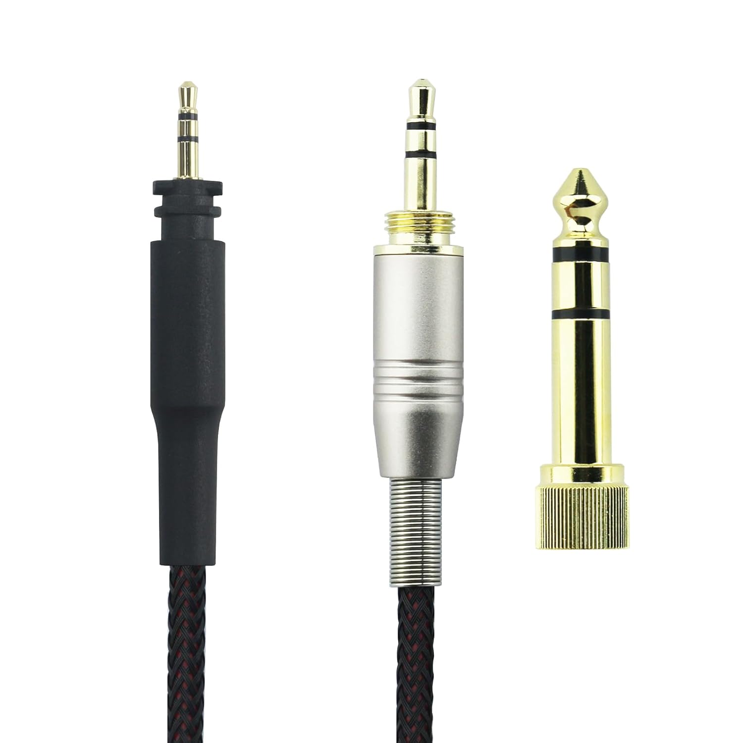 - Its jack is 3.5mm Male & 6.35mm adapter to 2.5mm male(the 2.5mm end comes with the lock the same as the Original cable)
