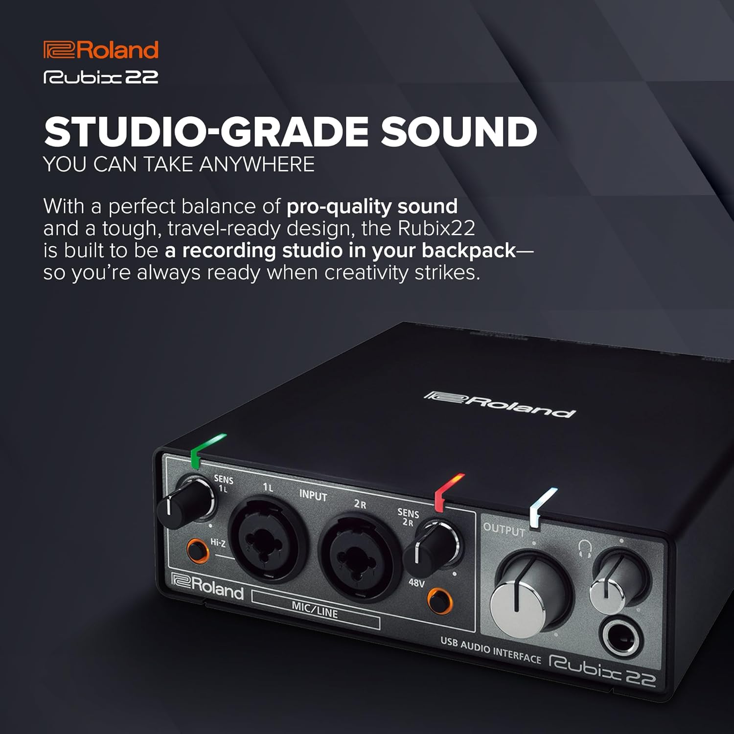 Product Description Rubix22 offers a perfect balance of high-fidelity sound, solid build quality, compact size, affordable price, and crucial features for today’s musicians and producers. With support for high-resolution audio up to 24-bit/192kHz, Rubix22 sounds clear and defined and is carefully engineered to have extremely low noise from input to output. Its near universal USB support means it works seamlessly with Mac and PC computers, and even supports iPads, for the ultimate in portable music production and performance. From the Manufacturer Roland’s Rubix22 offers a perfect balance of high-fidelity sound, solid build quality, compact size, affordable price, and crucial features for today’s musicians and producers. With support for high-resolution audio up to 24-bit/192kHz, Rubix22 sounds clear and defined and is carefully engineered to have extremely low noise from input to output. Its near universal USB support means it works seamlessly with Mac and PC computers, and even supports iPads, for the ultimate in portable music production and performance.