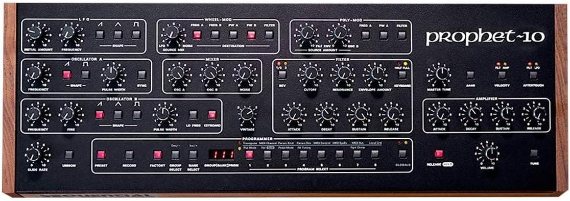 The Ultimate Prophet-10 from Synth Legend Dave Smith Renowned synth designer Dave Smith is back, and hes brought with him the most powerful Prophet-10 yet! A reimagination of the iconic 10-voice polyphonic synth, the Prophet-10 Rev4 is packed with features from every iteration of the Prophet-10. It inherits its ultra-stable voltage-controlled oscillators from the Rev3 and provides you with a choice between the Rev1 and Rev2s Rossum-designed filter or the Rev3s Curtis-designed filter. A unique vintage knob even lets you choose from behavior characteristics of the earlier versions. With its knob-per-function architecture, the Prophet-10 never fails to inspire just ask the synthesists at Sweetwater! To get you started right out of the box, the Prophet-10 comes loaded with a stellar selection of factory presets, and it includes 200 user slots for storing your custom-made patches. Dave Smith and the folks at Sequential struck gold with the Prophet-10, a drool-worthy