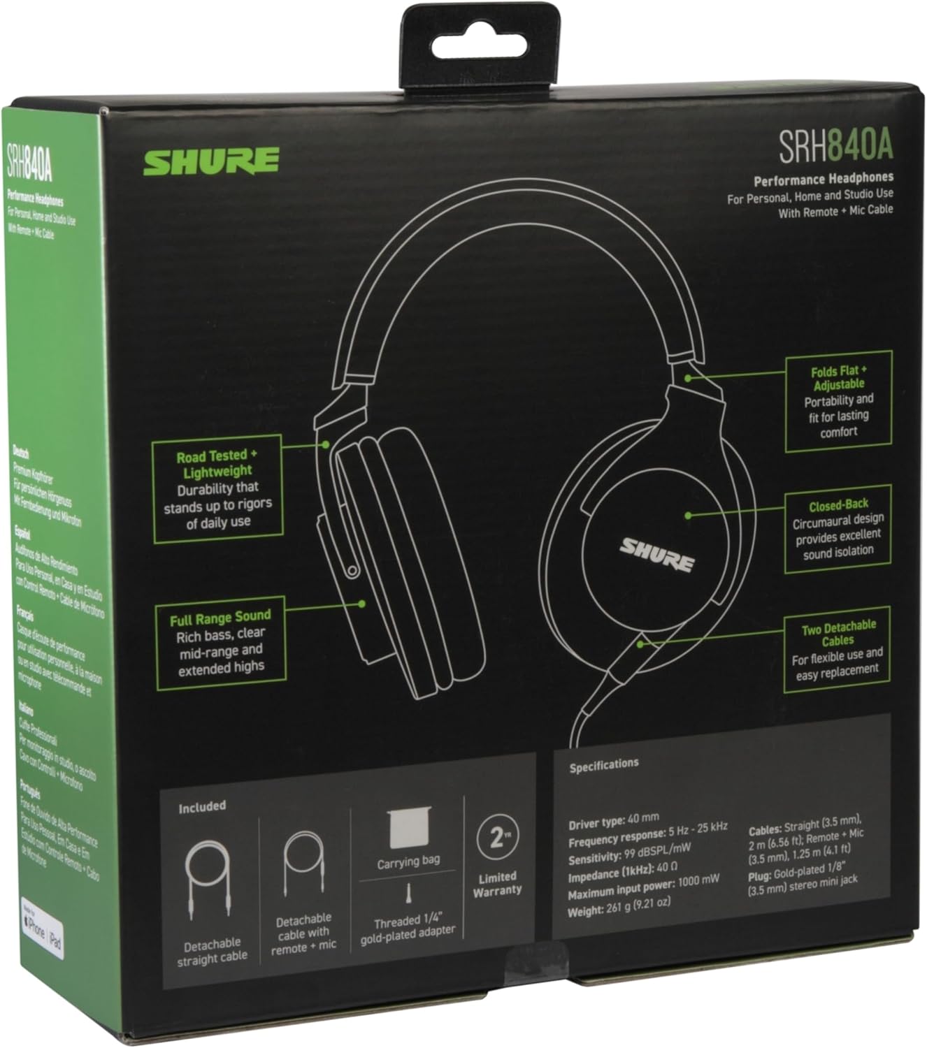 • WHAT’S IN THE BOX – Detachable cable, carrying bag, threaded ¼” (6.3 mm) gold-plated adapter and FREE two-year warranty.