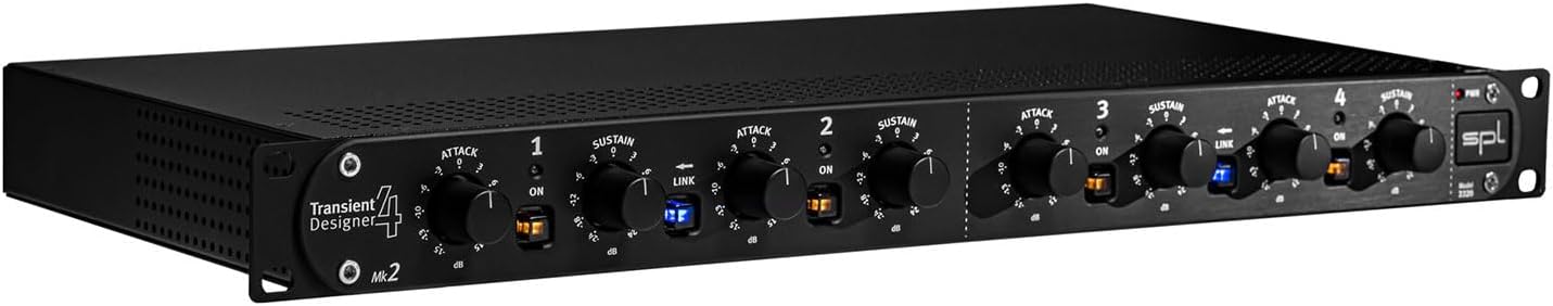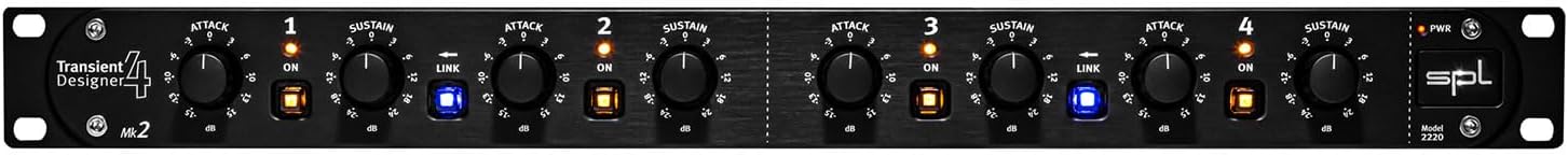 Shape Transients Like Never Before The original SPL Transient Designer caused a huge stir upon its introduction in 1998, but SPL has now upped the ante. Featuring the same Differential Envelope Technology (DET) and 4-channel level-independent processing qualities as its forerunner, the Transient Designer MK2 adds a new design and an even more stylish look and feel. Its 4mm thick black anodized faceplate, solid aluminum-milled knobs, and black powder coated high-quality steel housing look fantastic in any rack. Under the hood, youll find Neutrik XLR connectors with gold-plated contacts on all four channels and an electronically balanced signal transmission at a nominal +6dB level. And, as always, only two controls are needed to get incredible results with this brilliant device.On the Attack Sweetwater studio engineers repeatedly praise the SPL Transient Designer 4 MK2s ease of use. Attack, one of only two controls needed, allows you to increase or decrease the
