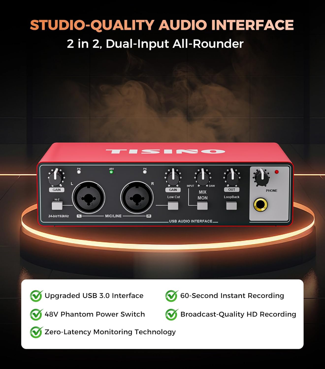 TISINO Professional-Grade USB Audio Interface for Beginners