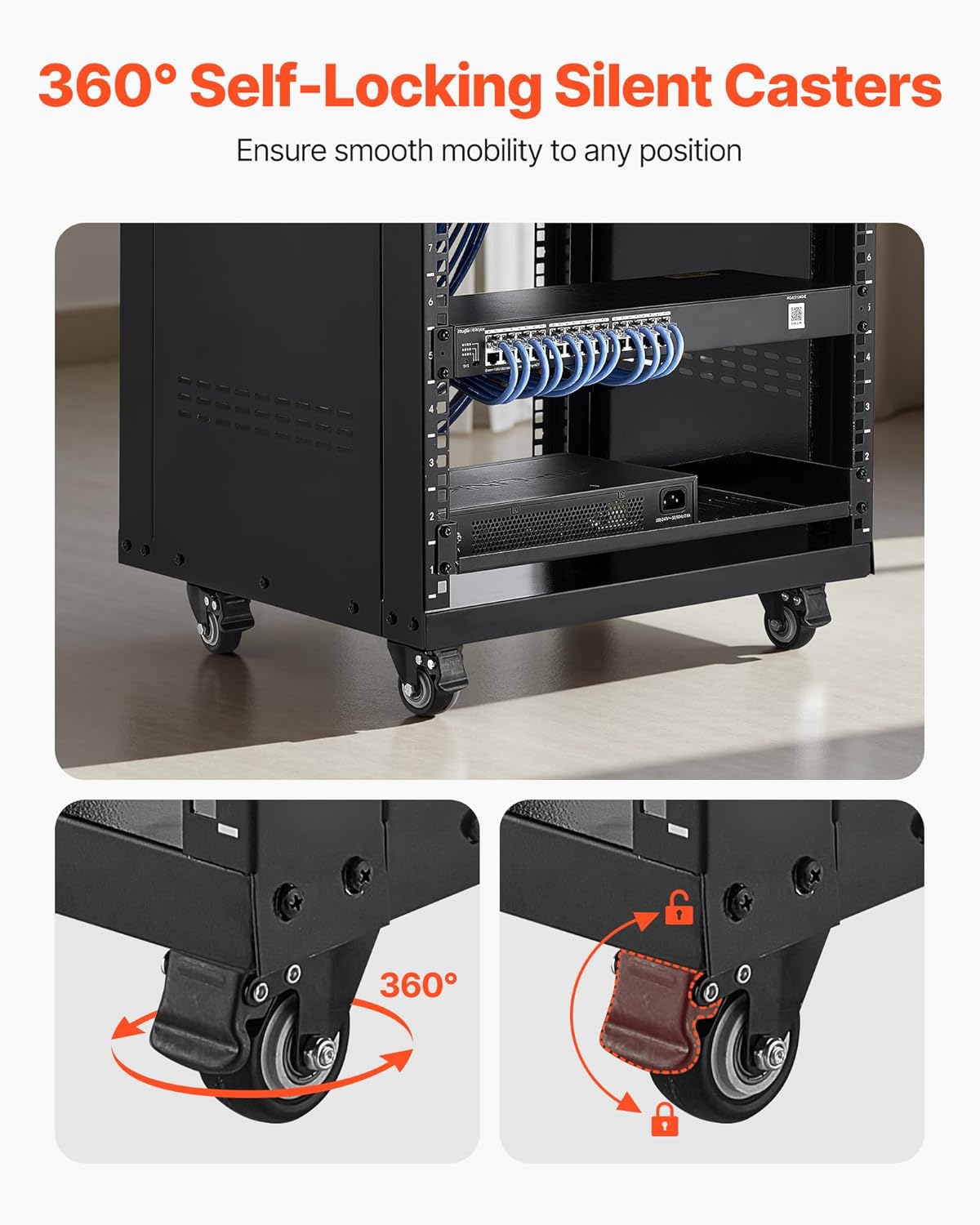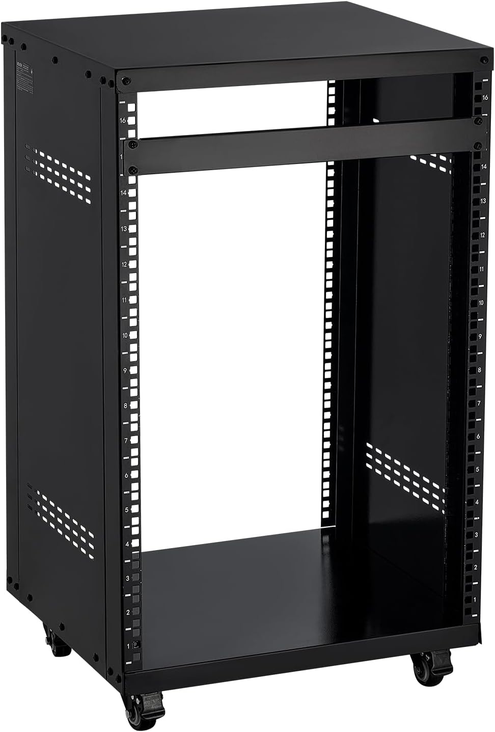 VEVOR 16U AV Rack, Recording Studio Rack Cabinet, Open Frame Server Rack with Locking Caster Wheels, Removable Side Panels & Vent Design for 19 Network, Audio, Video, IT & Network Equipment Mounting